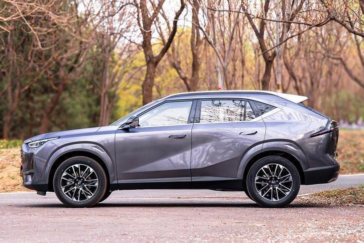 車身側面,整體造型挺拔修長,線條輪廓和品牌在售的影酷基本保持一致,切割型面展現出了強烈的肌肉感。同時,新車全系標配隱藏式門把手,有利于增強外觀協調感,降低風阻系數。車輛的尾部并沒有沿用標志性的豎向四出排氣布局,而是采用了比較常規的隱藏式排氣,尾部線條飽滿圓潤,雙層式貫穿LED尾燈采用熏黑處理,搭配鏤空式后擾流板和銀色仿擴散器裝飾設計來看,整體辨識度較高。