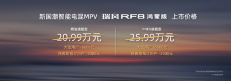 超越用戶期待,滿懷誠意回報。從即日起至5月31日,大定用戶尊享1萬元抵16666元現金膨脹禮,預售期下定用戶疊加享受2000元抵5000元的預售權益。瑞風RF8鴻蒙版越級而立,以滿腔誠意打造了一個高價值的出行選擇,引領MPV市場進入新價值時代。