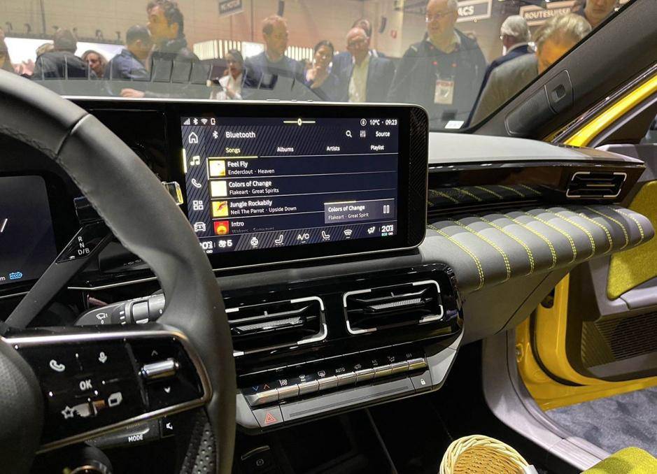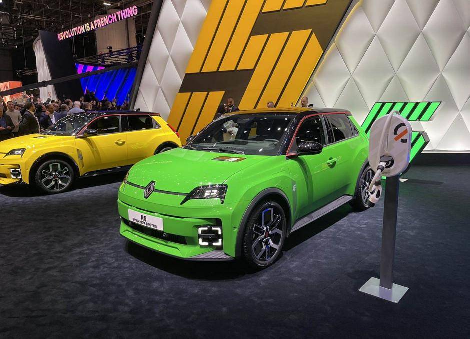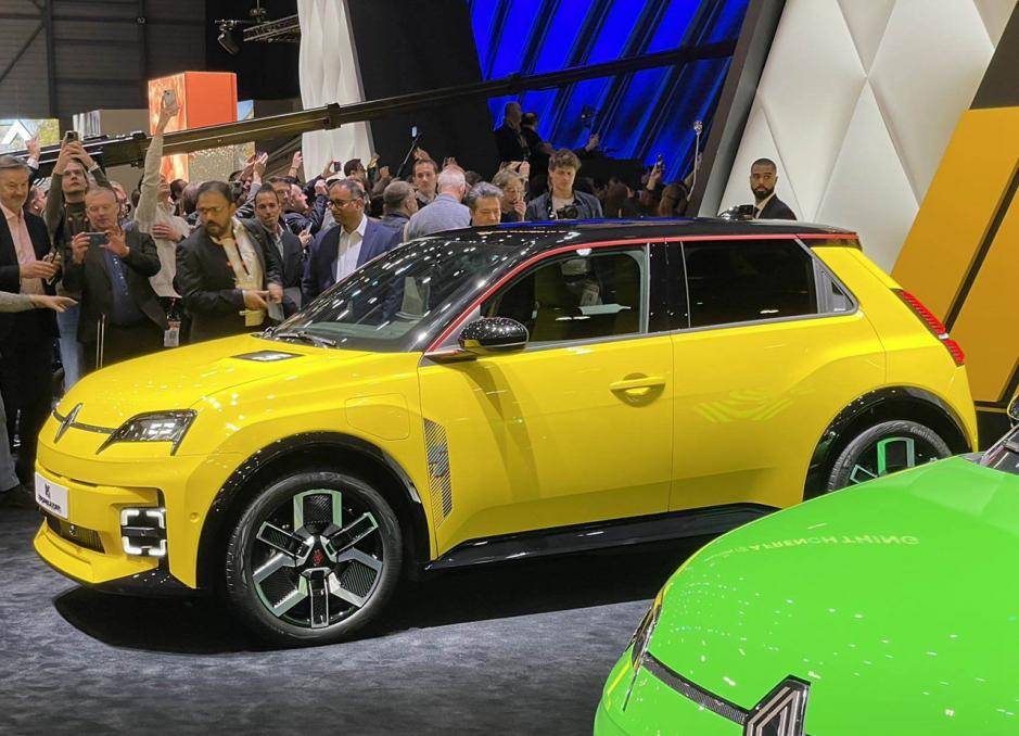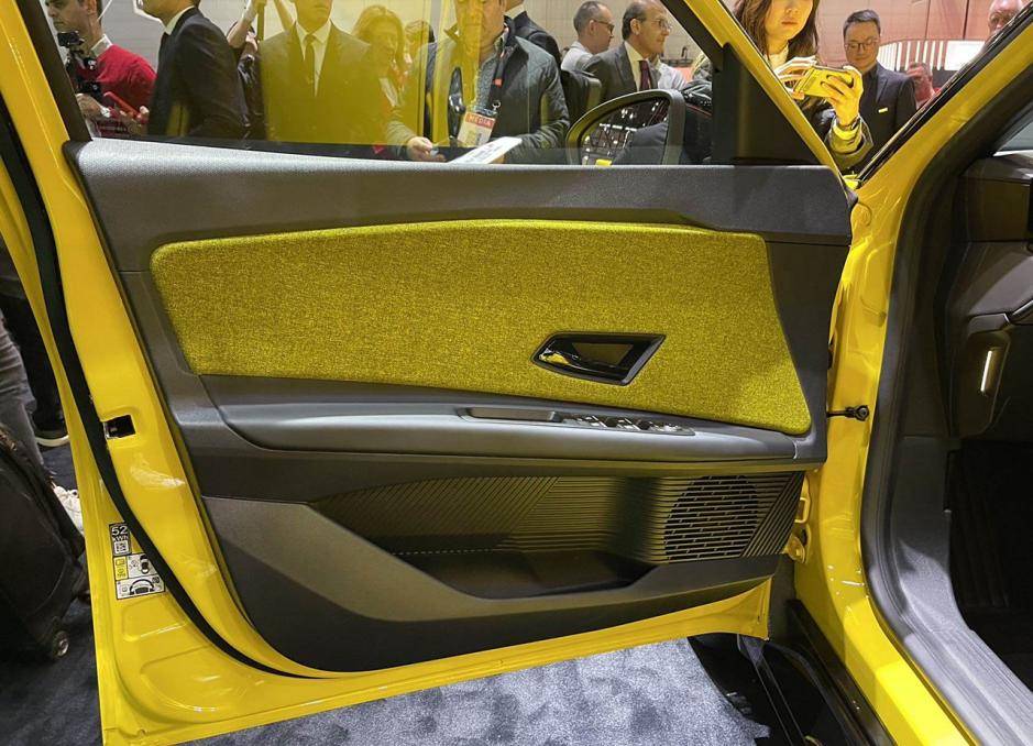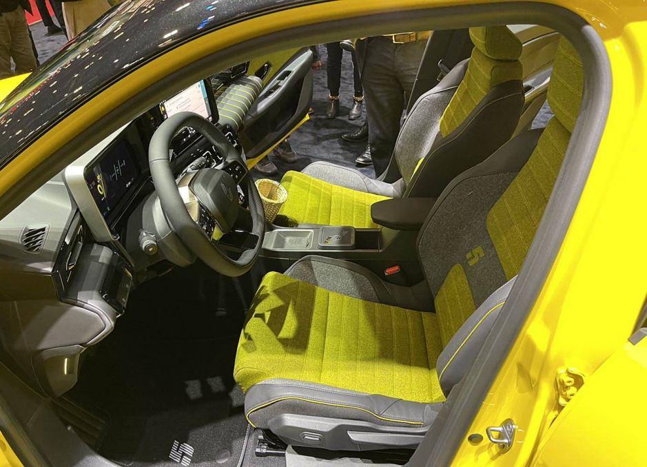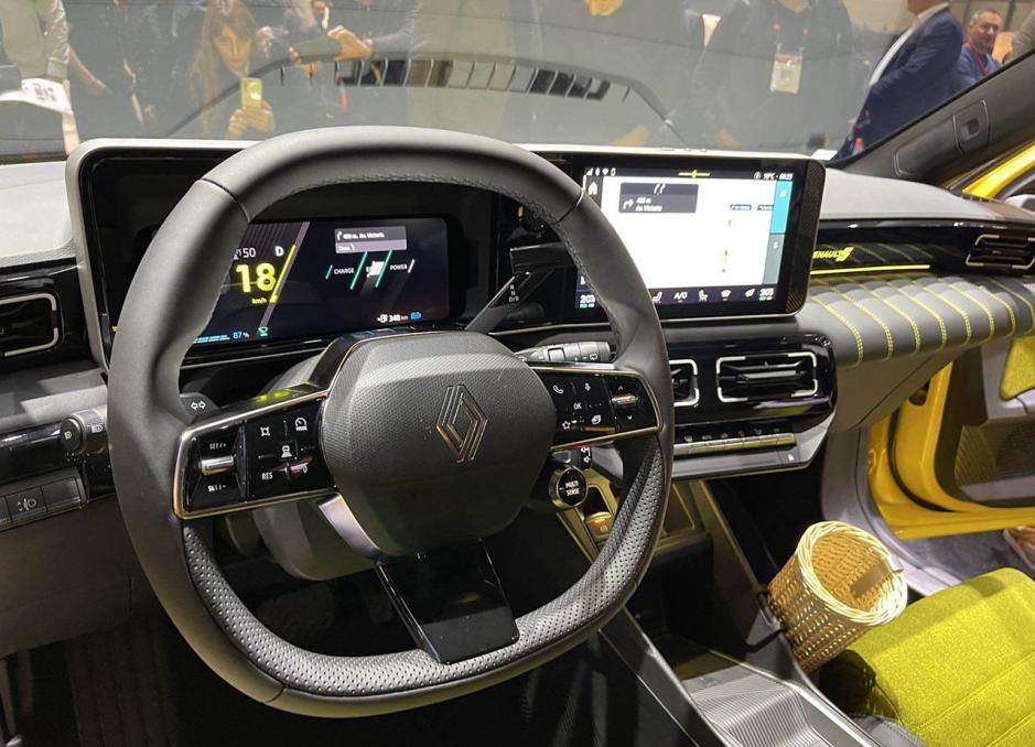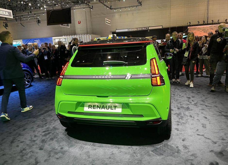 外觀方面,新車外觀設計很有意思,有一種復古的感覺,特別耐看。配色上有大黃色、亮綠色,觀感上特別抓人眼球。前臉來看,新車格柵為封閉設計,雷諾的車標位于中間,兩側有線條鏈接,形成一體式設計。燈組采用圓角矩形結構,內部是LED光源,四個角都可以點亮。發動機引擎蓋上有一塊顯示屏,充電時會顯示相關數據,滿電時顯示5,對應新車的名字。
