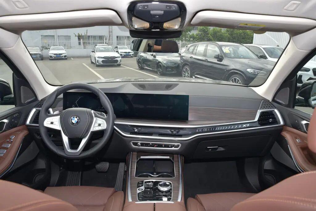 相比之下,寶馬X7則是采用家族式最新的設(shè)計(jì)語言,尺寸巨大的雙腎式進(jìn)氣格柵以及分體造型的頭燈組合,整個(gè)前臉看起來頗為科幻犀利。另外側(cè)面也是標(biāo)準(zhǔn)的全尺寸SUV形象,如果單從身板來看的話,這款寶馬X7絕對稱得上是巨無霸。不過較為平淡的線條勾勒,視覺效果并沒有攬勝運(yùn)動(dòng)版表現(xiàn)出色。車尾部分,寶馬X7使用上窄下寬的整體布局,對稱設(shè)計(jì)的尾燈組合,中間加入了鍍鉻飾條進(jìn)行橫貫,進(jìn)一步延展了視覺寬度,搭配下方雙邊雙出的排氣布局,論起運(yùn)動(dòng)感營造,其表現(xiàn)還是比較到位的。