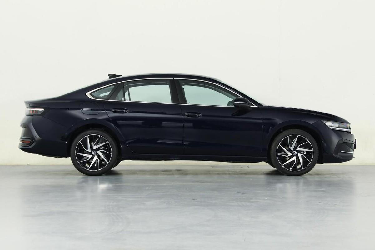 從側(cè)后方向來看,邁騰的腰線還是貫穿連接了前后車門把手,線條比較尖銳而下方出現(xiàn)了淺溝壑,在前端消失在了前翼子板處,而在后端則進(jìn)入到了尾燈的邊角位置。同時,車尾除了有一個比較軟潤的鴨尾外,中央的熏黑尾燈與下方帶黑色裝飾配件的反光帶都實現(xiàn)了左右貫穿,前者采用了大眾Surface LED面光源技術(shù)。同時,后保險杠不再提供裸露的排氣管,而是采用了下置式的隱藏處理,既能夠在尾箱蓋上形成比較豐富的層次,又能通過這樣的簡化處置讓車輛顯得干練一些。