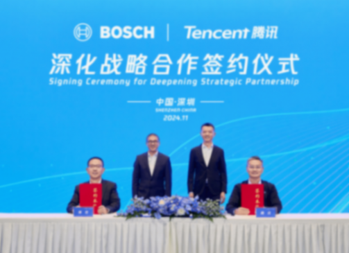 11月4日消息,博世宣布已與騰訊簽訂新一輪的戰略合作備忘錄,雙方將在公有云、自動駕駛專有云、自動駕駛地圖、智能座艙、大模型底座、智能化方案國際化拓展等方面繼續深化合作,旨在融合雙方優勢,共同拓展智能化業務。