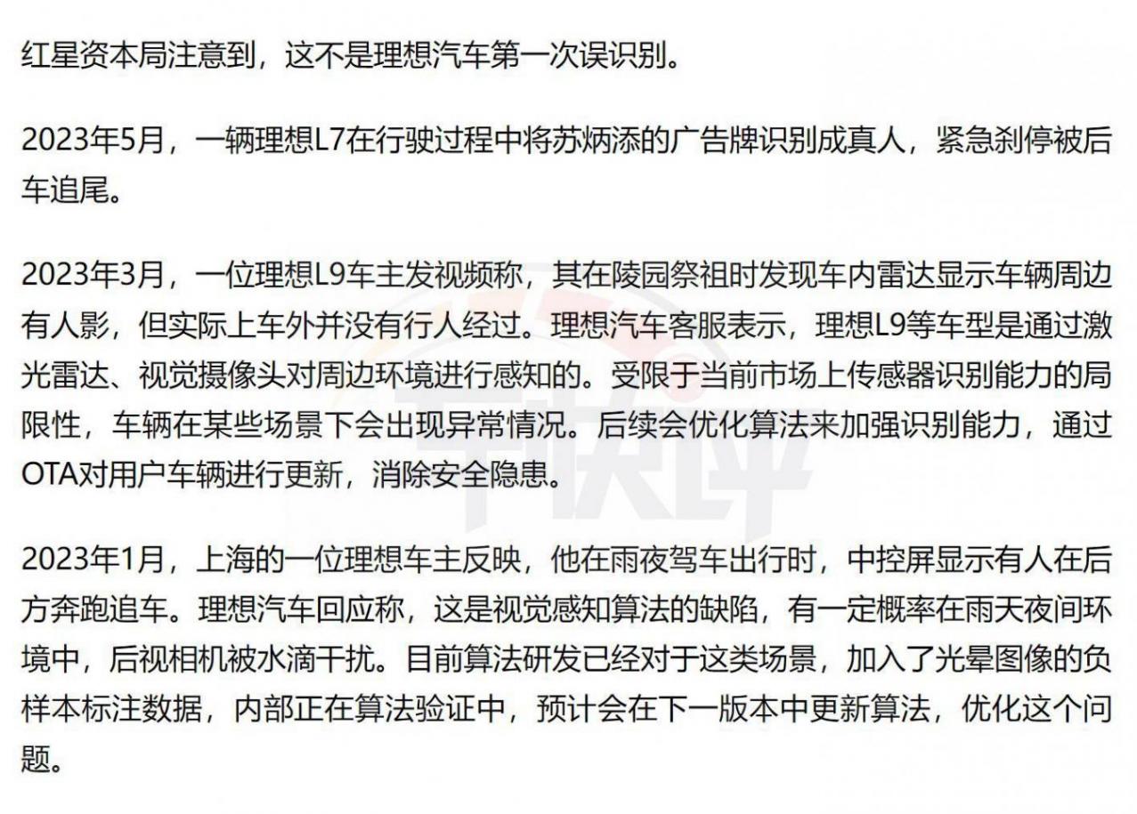 與此同時,理想汽車相關負責人在接受媒體采訪時也明確表示,發生此次事故的原因是車輛將高速公路上的廣告圖片誤識別為實車,是系統誤識別后續會改進軟件系統。