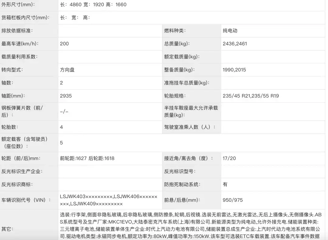 動力上新車將會搭載單電機驅動,電機最大功率150千瓦。根據車型版本的不同分別會配備磷酸鐵鋰和三元鋰電池,純電續航最長710公里。至于零百加速和是否會推出四驅版車型,目前官方并未透露。
