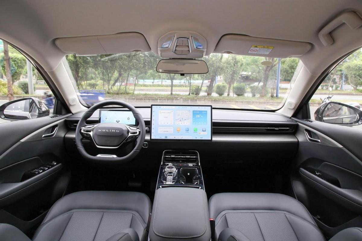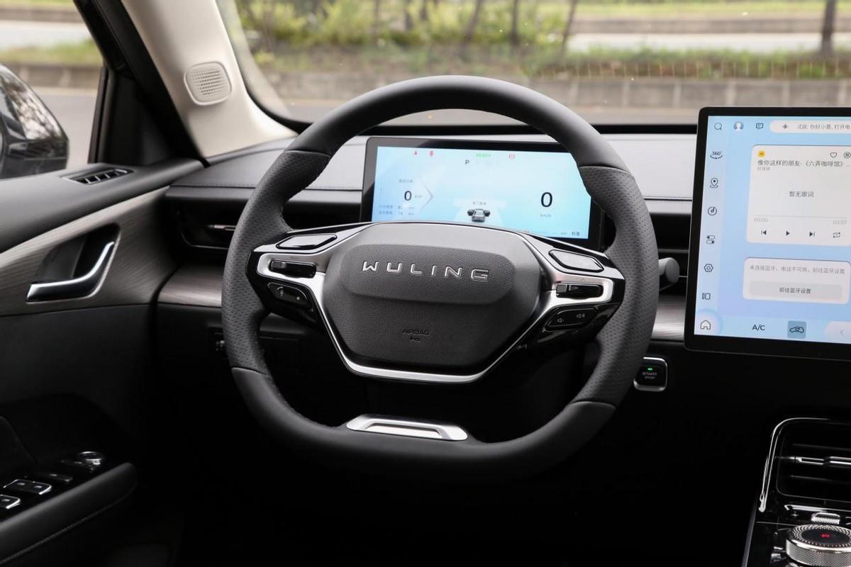 內飾方面:五菱星光EV的內飾設計很工整,沒有過多的裝飾,但是每個功能區域劃分得都很明確,8.8英寸的液晶儀表盤和15.6英寸的中控大屏采用懸浮式設計,背后就是貫穿式的出風口,中臺位置上布局了旋鈕式的換擋按鍵和常用的功能按鍵,整個駕駛艙的包裹性很好,車內的氛圍營造得也恰到好處。