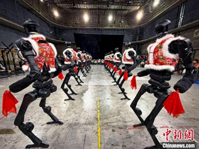2025年春節聯歡晚會上,16臺人形機器人參與節目《秧BOT》的表演,用科技與文化融合的機器人秧歌,給觀眾留下深刻印象。
