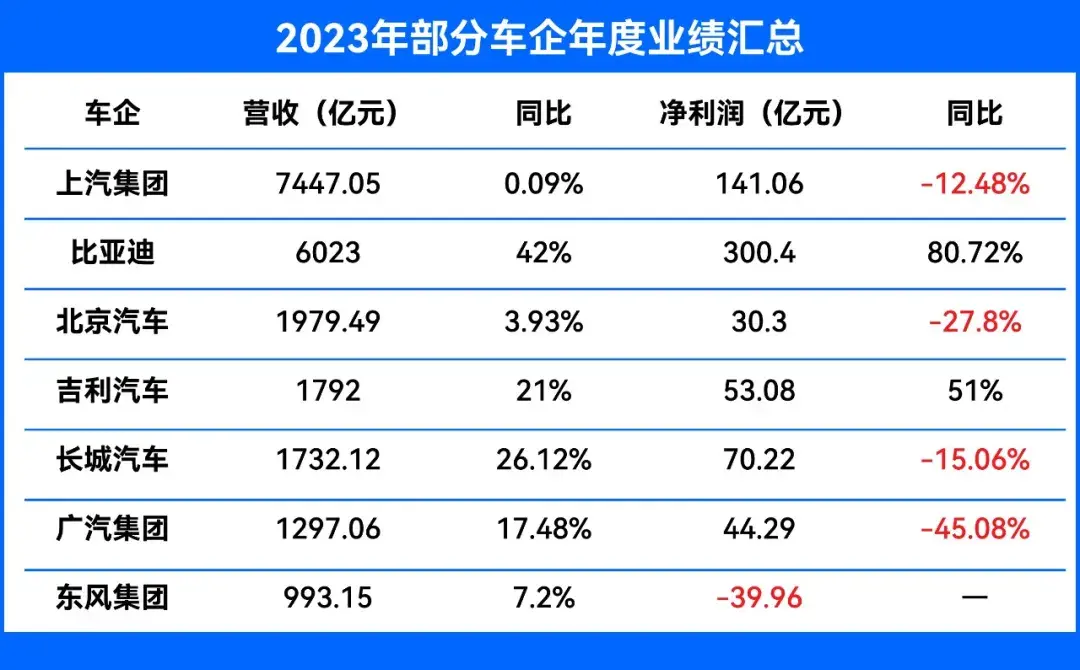 雖然汽車(chē)市場(chǎng)看起來(lái)一副欣欣向榮的景象,但事實(shí)上,在這場(chǎng)內(nèi)卷里,大多數(shù)選手的后果都一樣——殺敵一千自損八百。這波烈度空前的價(jià)格戰(zhàn),對(duì)全行業(yè)的盈利造成了巨大壓力。據(jù)轱轆哥不完全統(tǒng)計(jì),15家上市車(chē)企在2023年均實(shí)現(xiàn)營(yíng)收增長(zhǎng),但其中多達(dá)9家陷入增收不增利的局面。
