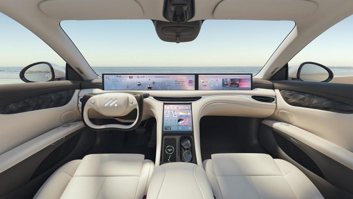 智己L6的內(nèi)飾設(shè)計與家族的其他車型保持了高度一致,比如半幅式的方向盤(圓形方向盤也有提供)、貫穿式的橫屏等,并且新車將會提供白色和灰色內(nèi)飾供消費者進行選擇。另外,智己標志性的超長屏幕也非常吸睛,高通8295加上新的IMOS系統(tǒng),讓整個智能座艙提升不少。