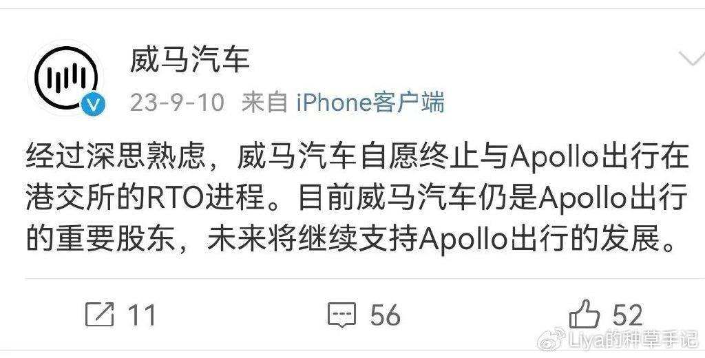 狂虧幾百億,還能找到“接盤俠”嗎?從2023年開始,威馬便開始四處“求救”。 一開始,是希望通過“借殼”上市來進行融資。 2023年1月,港股上市公司Apollo出行發(fā)布公告稱,將以20.2億美元收購威馬汽車。完成收購后,威馬汽車方面將持有311億股Apollo出行股份,持股比例為68.26%。但到了9月,Apollo卻發(fā)布公告稱,相關各方已同意終止收購威馬協(xié)議。