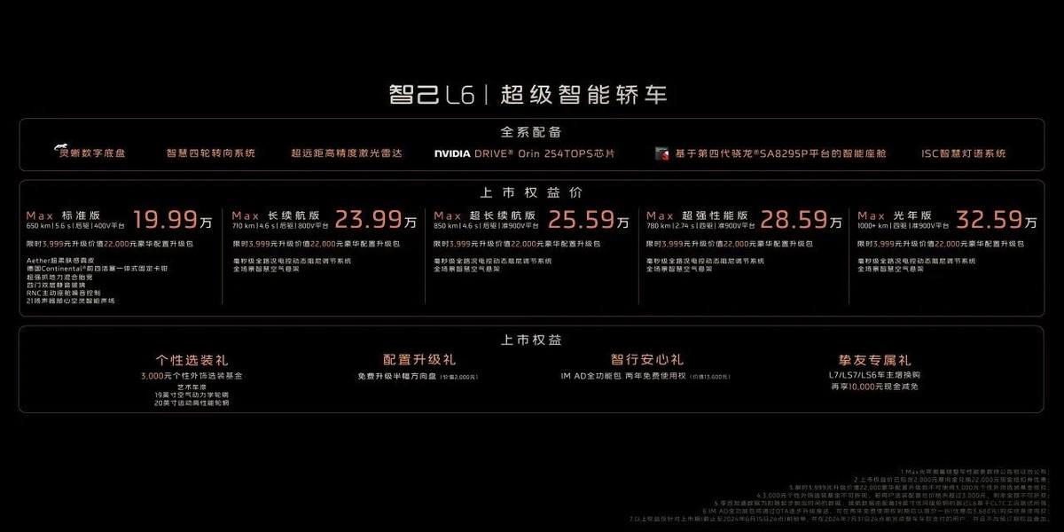 1,智己L6起售價(jià)是21.99萬(wàn),前期權(quán)益是減20000,入門19.99萬(wàn),比小米SU7價(jià)格確實(shí)要實(shí)在一些,但是智己L6的車型上不夠精簡(jiǎn),已上市是4個(gè)版本,還有一個(gè)固態(tài)電池光年版9月份上,總共是5個(gè)配置,我個(gè)人感覺次低配25.99萬(wàn)那個(gè)MAX長(zhǎng)續(xù)航可以取消,這樣消費(fèi)者很容易記住你的車是75度電和100度電,400V和準(zhǔn)900V,中間多一個(gè)800V平臺(tái),還是83度電,增加消費(fèi)者選擇難度,你們說(shuō)呢?