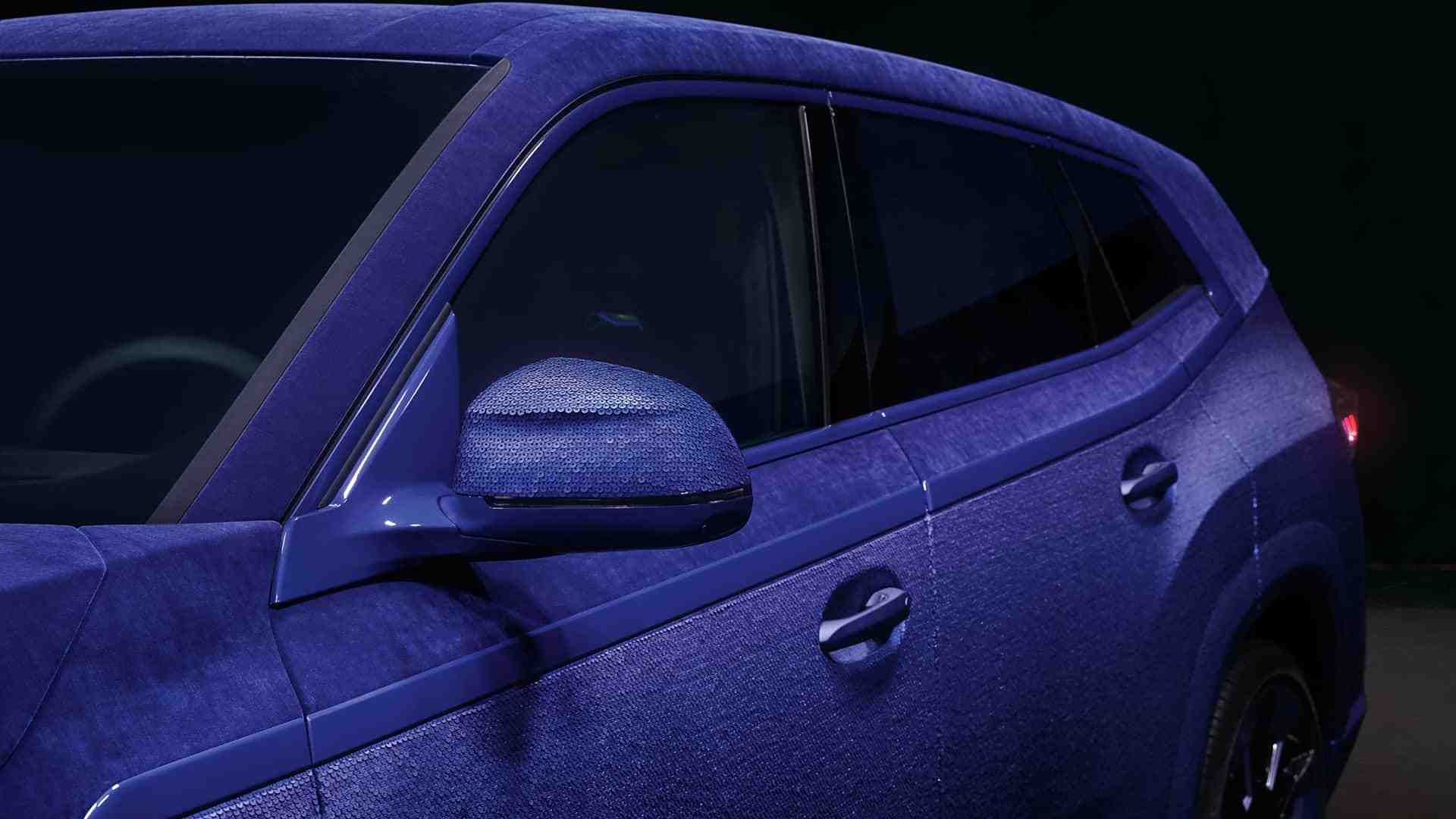 新車的外觀設(shè)計(jì)和寶馬XM幾乎一樣,不同的是,它采用了時(shí)尚品牌Jakob Schlaepfer提供的紫色天鵝絨包覆,在中網(wǎng)、前包圍兩側(cè)、外后視鏡殼等部位還通過(guò)紫色亮片點(diǎn)綴,提升了外觀的辨識(shí)度。