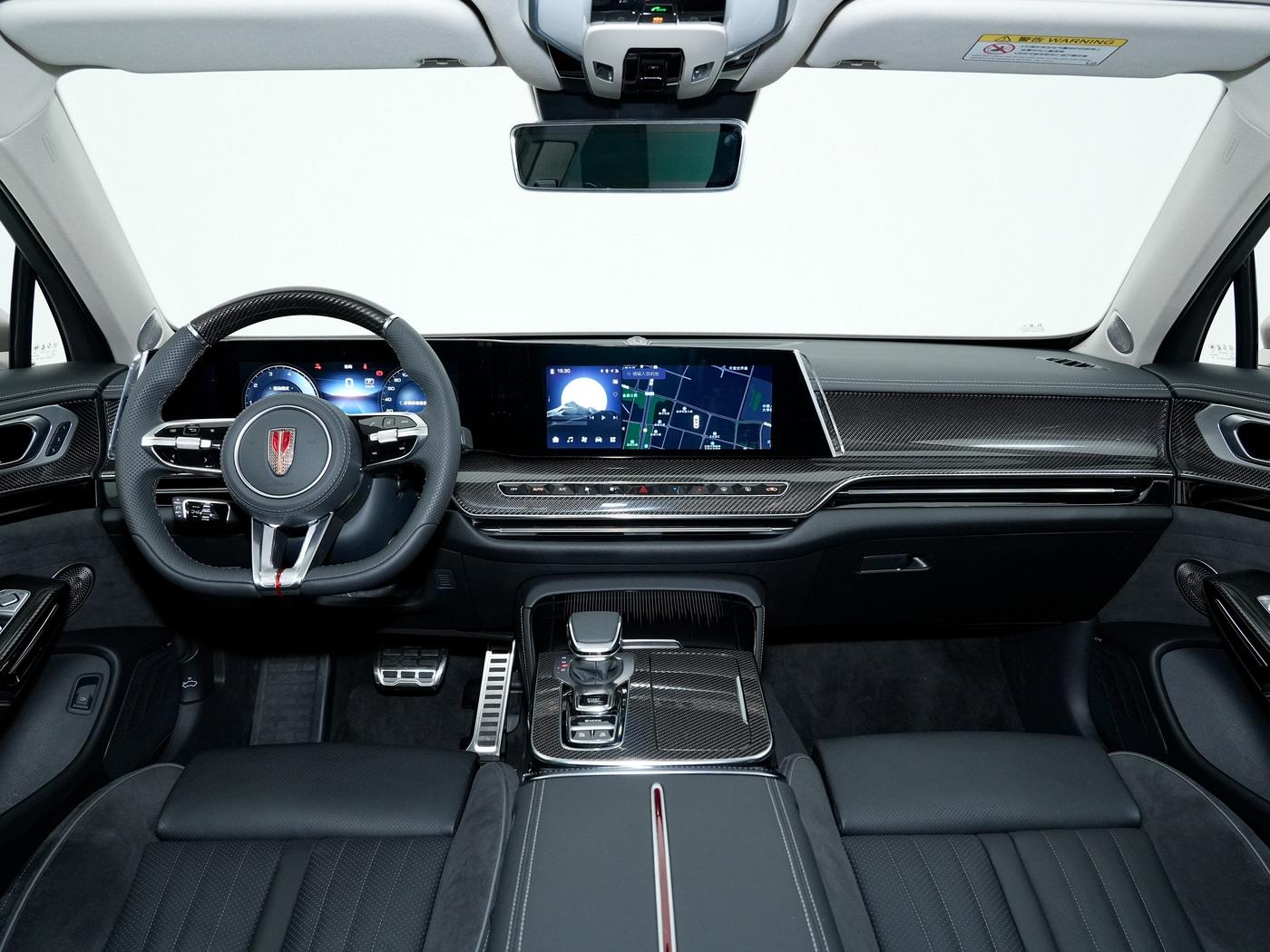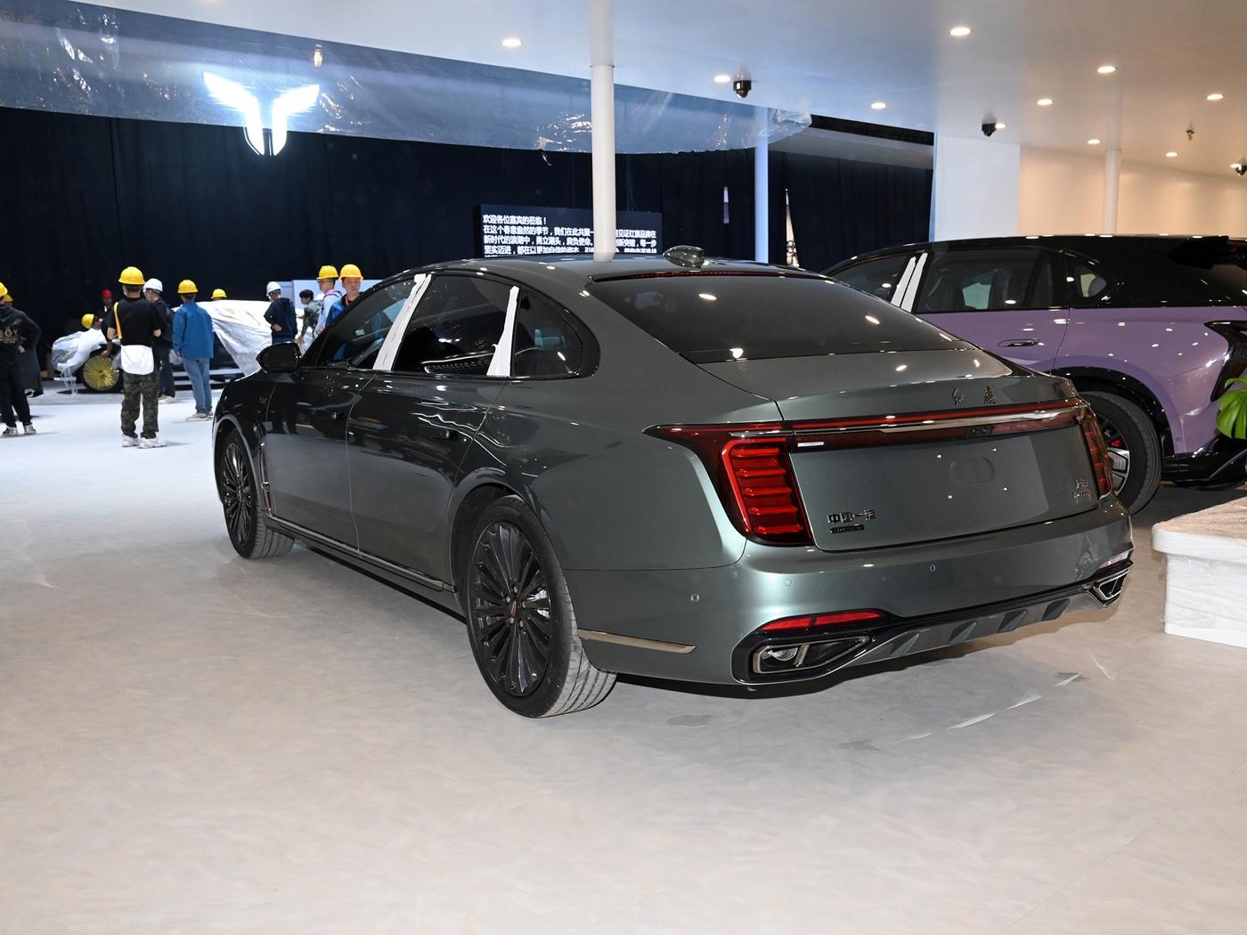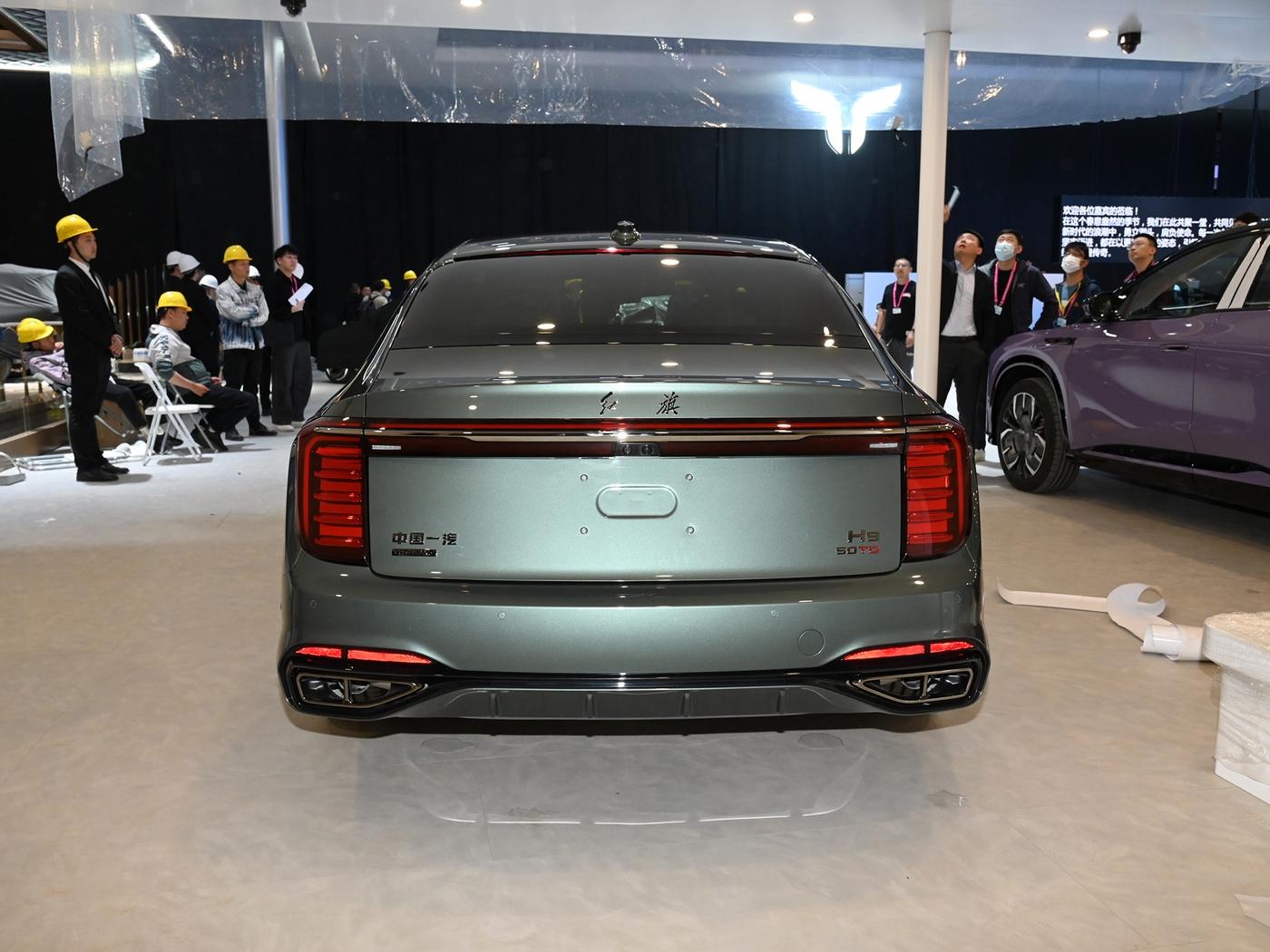 車尾部分,對尾燈進行了升級,由單燈20像素升級為單燈256像素,點亮后的視覺效果更加出眾,貫穿式尾燈也提升了車尾的辨識度,而且尾燈上方的“紅旗”二字是一代偉人的筆跡。再往下看,后包圍兩側(cè)還有雙邊共四出排氣裝飾,實際上它是雙邊共兩出排氣尾喉,強化了車尾的運動效果。