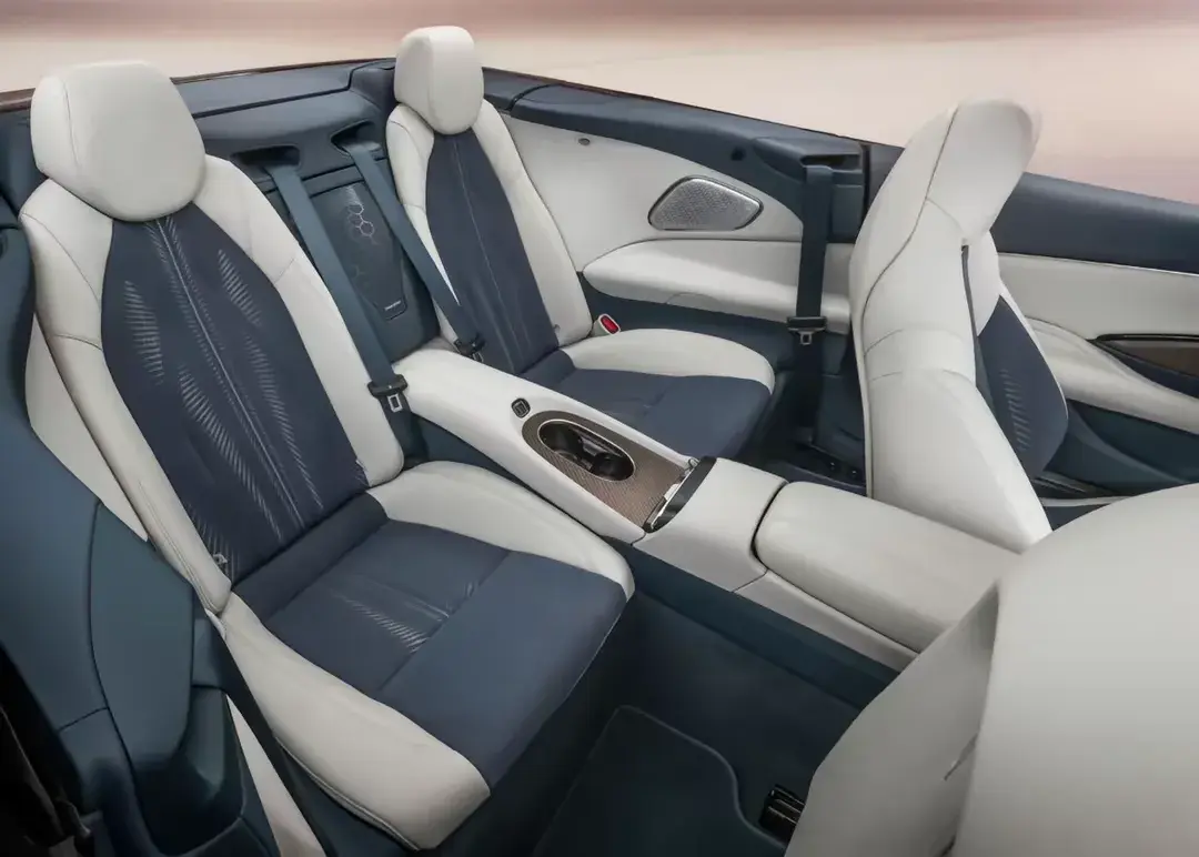 但最讓我感興趣的還是它那幾乎與燃油車持平的坐姿。通常電動車因為電池組的布局,乘客的坐姿會比較高,但在GranCabrio Folgore上卻不是這樣。原來,工程師們巧妙地將電池組設計成T形,布置在后排座椅的下方,既不影響車內空間,又保證了車輛的穩定性。這種設計不僅使得車身重心降低,還為車輛提供了額外的扭轉剛性。