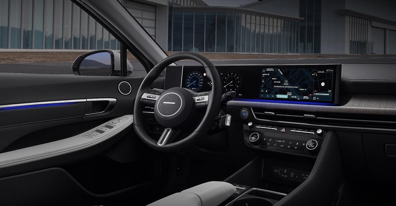 內飾設計上,第十一代索納塔同步實現了全面升級,包括雙12.3英寸全景曲面屏、旋轉式電子懷擋、摩斯密碼真皮方向盤、懸浮式64色氛圍燈、旋鈕觸控空調、典雅木紋飾板等,質感遠超同級車型水準。欣慰的是,第十一代索納塔內飾并未被帶偏,仍保留了常用的實體按鍵,在提升實用屬性的同時,更賦予高層次的情感價值。