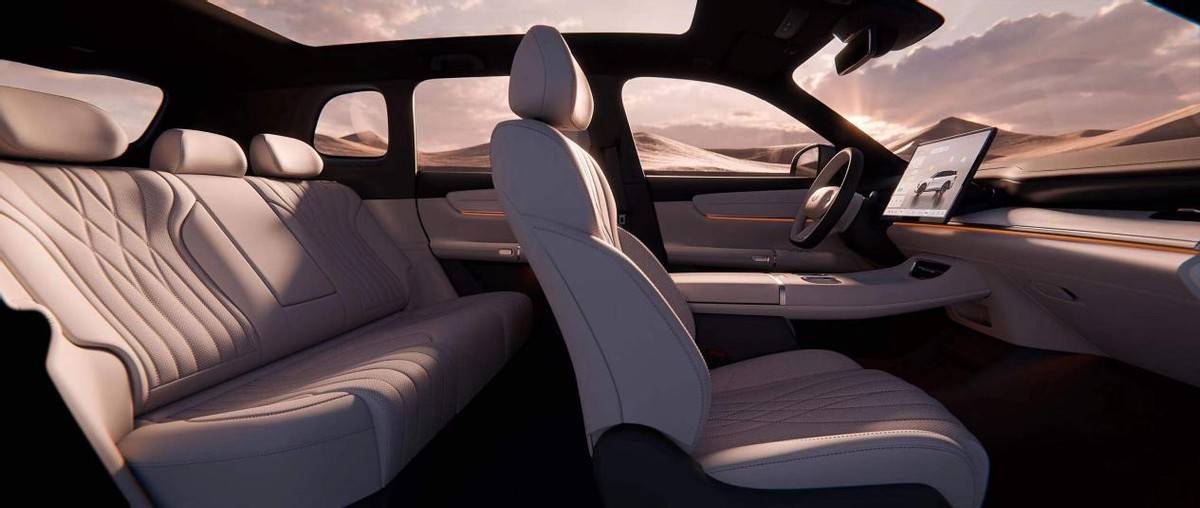 車(chē)內(nèi)部分,給人簡(jiǎn)約大氣的印象,整個(gè)中控層次分明,軟料運(yùn)用非常多,并且加入鍍鉻飾條貫穿中控延伸到側(cè)門(mén)。中控并沒(méi)有搭載儀表盤(pán)功能,皮質(zhì)包裹的三輻式方向盤(pán)握感估計(jì)不錯(cuò),上面的物理按鍵是內(nèi)部少有的運(yùn)用了。中控部分除了能左右角度調(diào)節(jié)的懸浮大屏,還在化妝鏡部分有著12.8英寸娛樂(lè)屏功能。