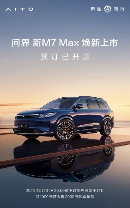 自從問界M7于去年9月上市之后,其銷量可謂是一路高漲。近日,AITO汽車也將會對這款汽車進行改款升級,并發(fā)布了改款問界M7的外觀官方圖片。新車將會推出4款Max車型,預(yù)售價將會在29.8萬元起,此外新車還將會新增一款名為“星際藍”的全新配色,新車預(yù)計將會在5月31日正式上市。