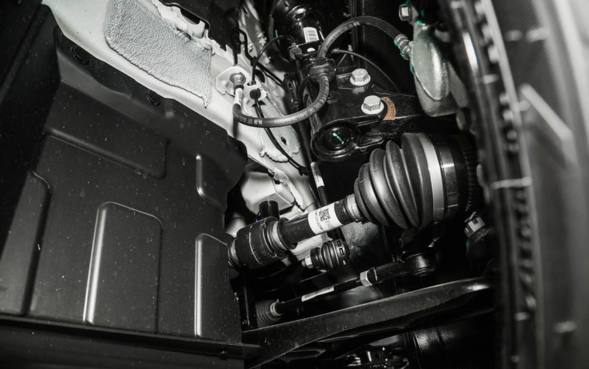 在懸掛的設計上,前部為傳統的麥弗遜結構,結構簡單,占用空間小,成本也低,全部都是鋼制,沒有看到鋁合金材質的應用,在前懸掛的半軸上,吉利安裝了橡膠阻尼塊,可以減少傳動過程中的噪音和震動傳遞,駕駛時車內更安靜。