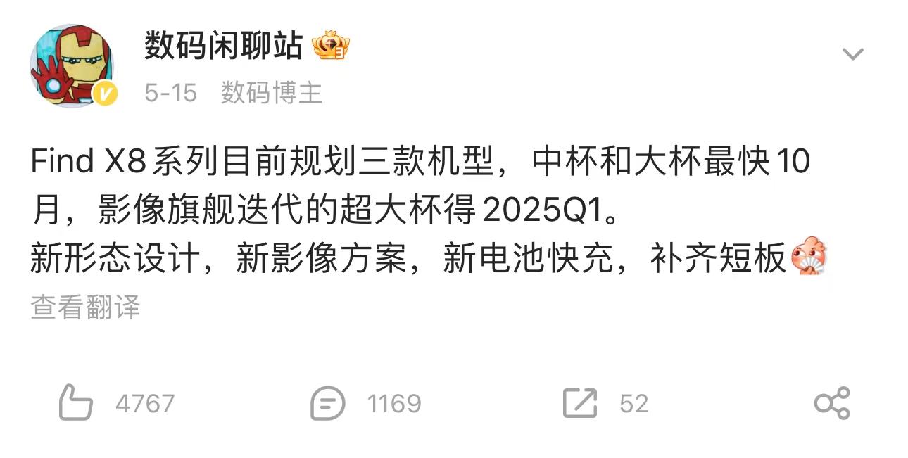 此外,OPPO Find X8系列估計是全系標配潛望長焦鏡頭,畢竟此前就有博主透露稱,Find X8標準版就有潛望長焦,估計Pro版也不會缺席。如此看來,OPPO Find X8系列的產品定位還是比較清晰的,標準版面向小屏用戶,Pro版面向主流用戶,而Ultra版則面向高端用戶。