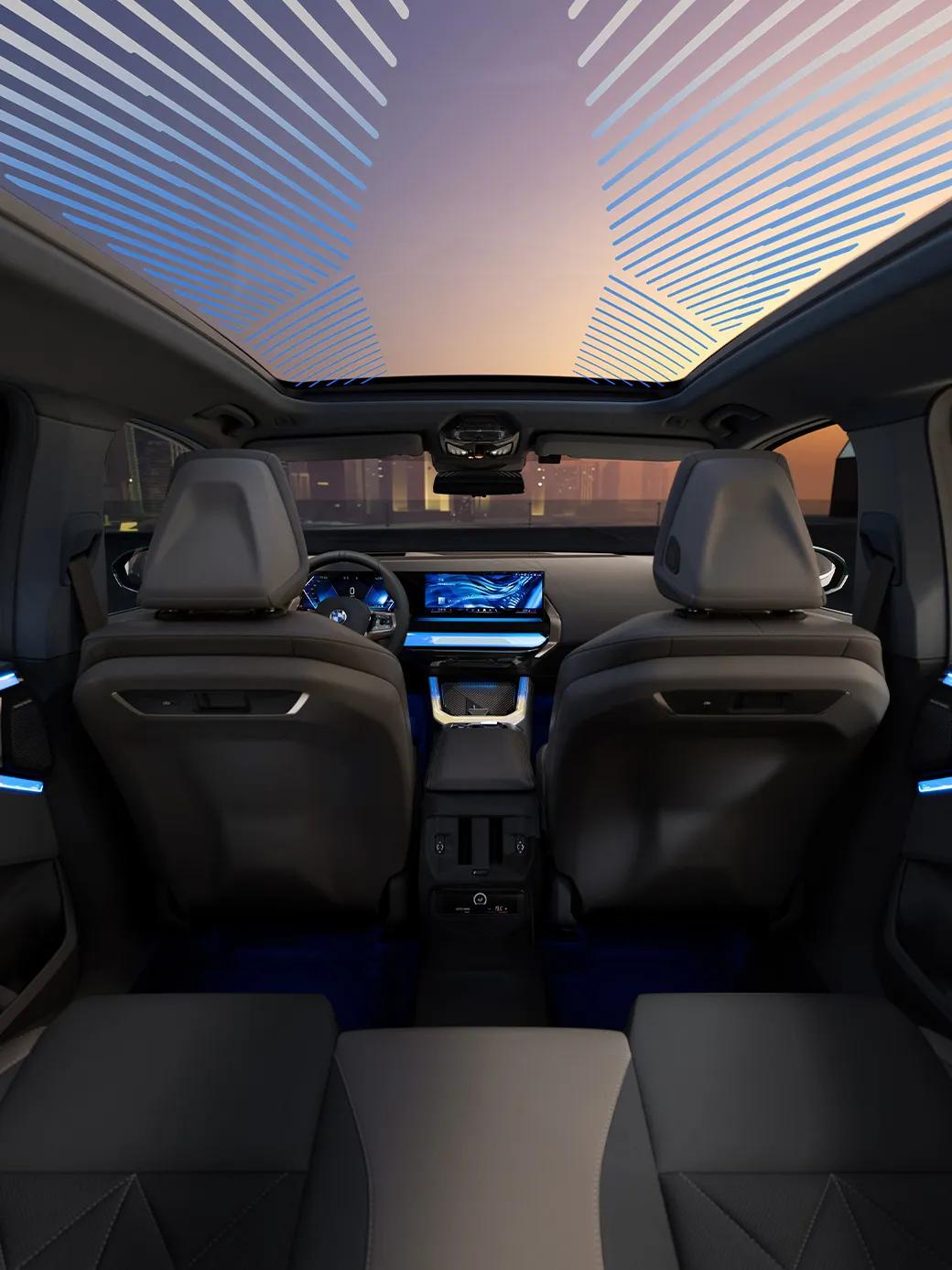 進入車內12.3英寸數字儀表盤和14.9英寸中央觸控顯示屏組成的雙聯屏布局,搭載寶馬第9代操作系統,支持QuickSelect、語音控制、蘋果CarPlay/安卓Auto手機互聯映射等功能,而靈魂“雞腿擋把”被小巧的換擋撥桿所替代,中控臺和車門位置的水晶裝飾氛圍燈飾條科技豪華氛圍感十分到位。