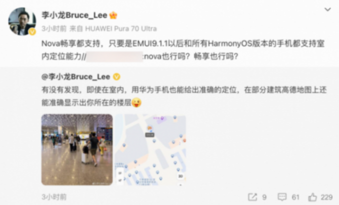 此外,華為終端BG CTO李小龍今天介紹了華為手機的室內定位功能。