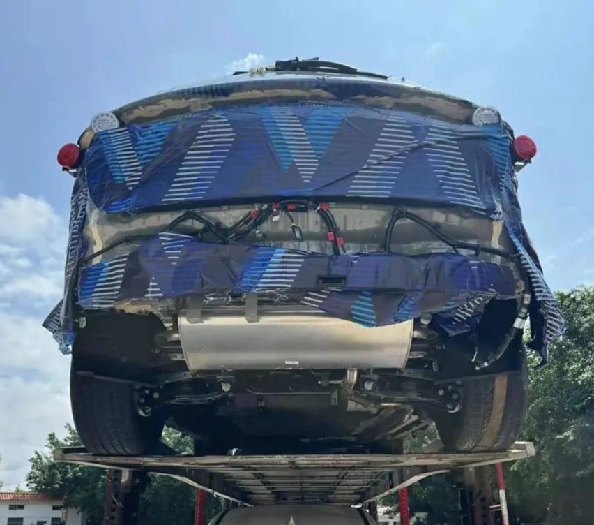 得益于視角較低,所以能看到新車下面的排氣管,這也說明了這是一臺混動車。圖片中的尾燈為圓燈,當然這是測試用燈,沒有參考價值,但通過后部的凹槽也能知道,新車將采用貫穿式尾燈的設計。