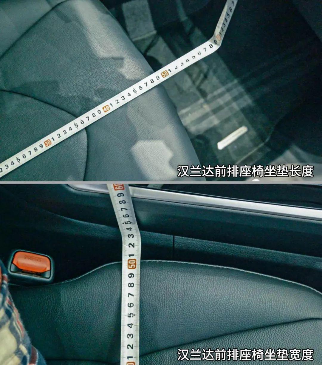 漢蘭達前排座椅長度為49cm,座椅寬度為50cm,這么一對比,差距是不是就很直觀了?