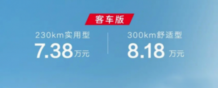 動力和續(xù)航部分,新車采用的是后置單電機驅(qū)動系統(tǒng),電機最大功率60千瓦,配備磷酸鐵鋰電池組,提供31.9千瓦時、41.9千瓦時兩種容量版本,相對應(yīng)的CLTC工況的純電續(xù)航里程分別為230km、300km。
