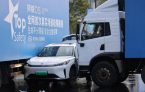 在今年上半年,榮威D5X DMH開展模擬“雨天大貨車雙側(cè)連環(huán)碰撞測試”,當天真實還原雨天十字路口環(huán)境,標準為8.6噸的大型載貨車以30km/h的速度,高速駛向榮威D5X DMH,并垂直于大貨車發(fā)生碰撞。同時,在受到首次撞擊后,另一側(cè)與標準為8.6噸的大型載貨車,再次發(fā)生二次碰撞。不過,根據(jù)模擬現(xiàn)場的結(jié)果來看,新車座艙內(nèi)部完整度較好,6個安全氣囊與4個車門均正常開啟,完全保護了乘客的安全性。最終,經(jīng)認證機構(gòu)確定,榮威D5X DMH也是成功通過本次“雨天大貨車雙側(cè)連環(huán)碰撞測試”挑戰(zhàn)。