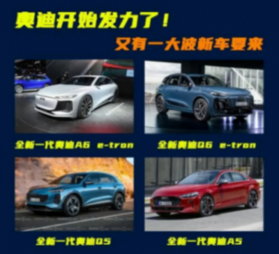據悉,奧迪將于今年至明年推出20款新車型。其中,奧迪全新A6 e-tron車型將在今年第2季度率先上市,而預計在今年下半年全新一代A5及Q5車型會推出,將在年底在國內市場投產。
