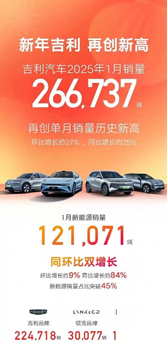 在剛剛過去的2025年1月的汽車銷量榜單中,自主品牌中出現了一個新的“內銷王”,他就是吉利汽車。在這一月,吉利的銷量為239,944輛,遠超比亞迪的234,202輛,這個數字的差距看起來不大,但是放在全年來看,差距已經是非常明顯了。