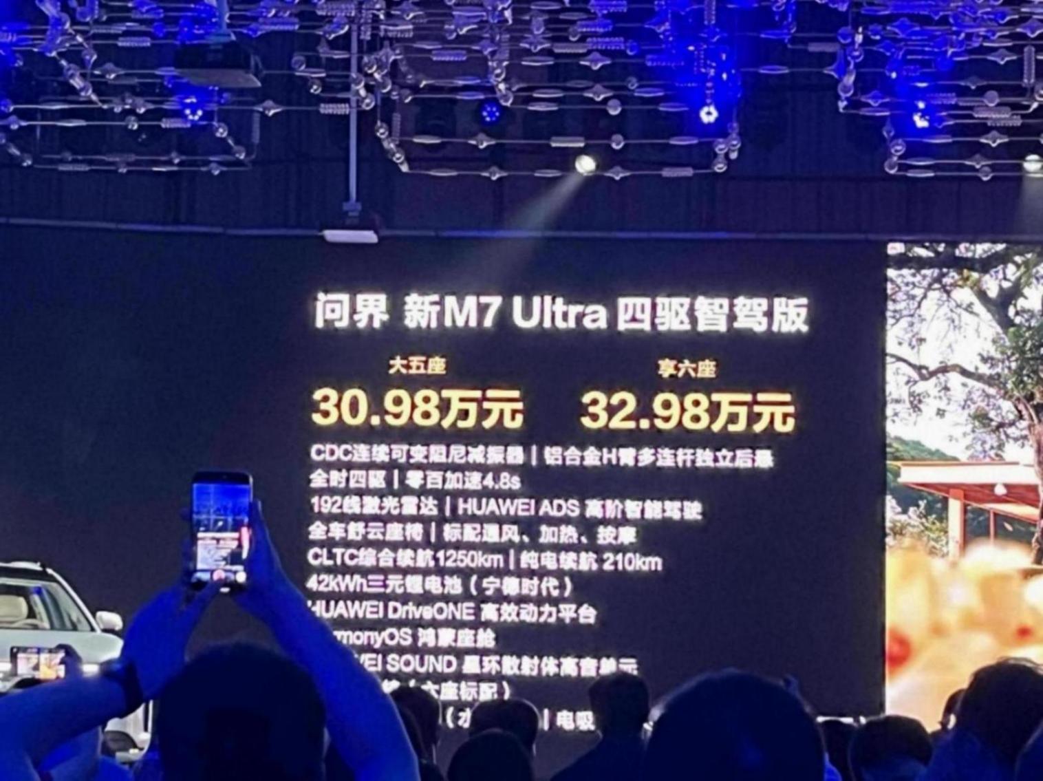 問界新M7 Ultra正式上市,新車共推出4款車型,售價區間為28.98萬-32.98萬元。作為改款車型,新車對外觀內飾等方面進行了煥新升級。采用了全新的星際藍外觀顏色,以及問界M9同款星環散射體、空間音頻。此外,新車還升級了192線激光雷達提升智駕能力。動力方面,新車搭載1.5T增程動力系統。