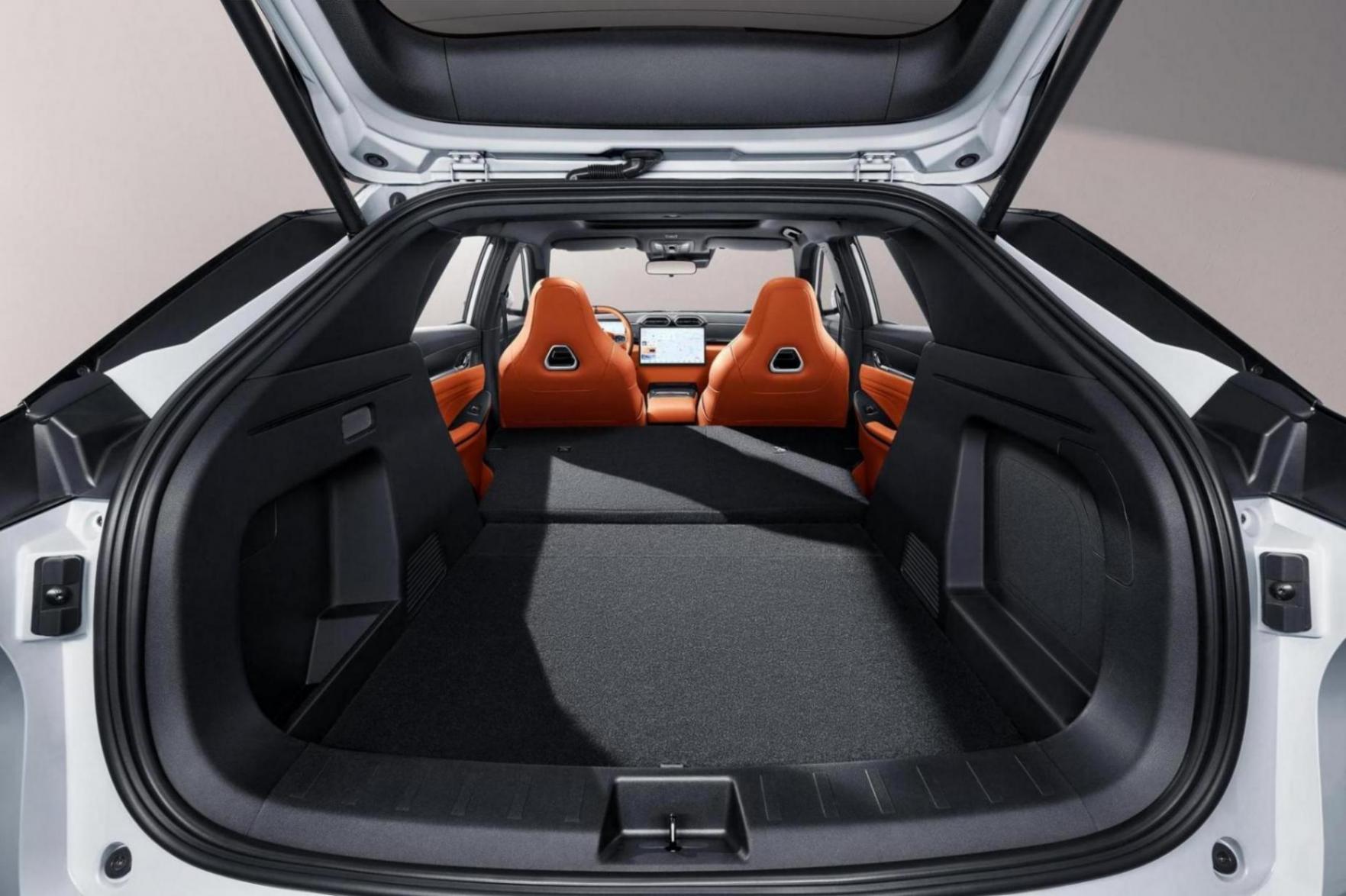 車側(cè)部分,通過熏黑飾板連接了后窗和尾窗,營造出懸浮式車頂?shù)囊曈X效果,還采用了隱藏式門把手,以降低風(fēng)阻。