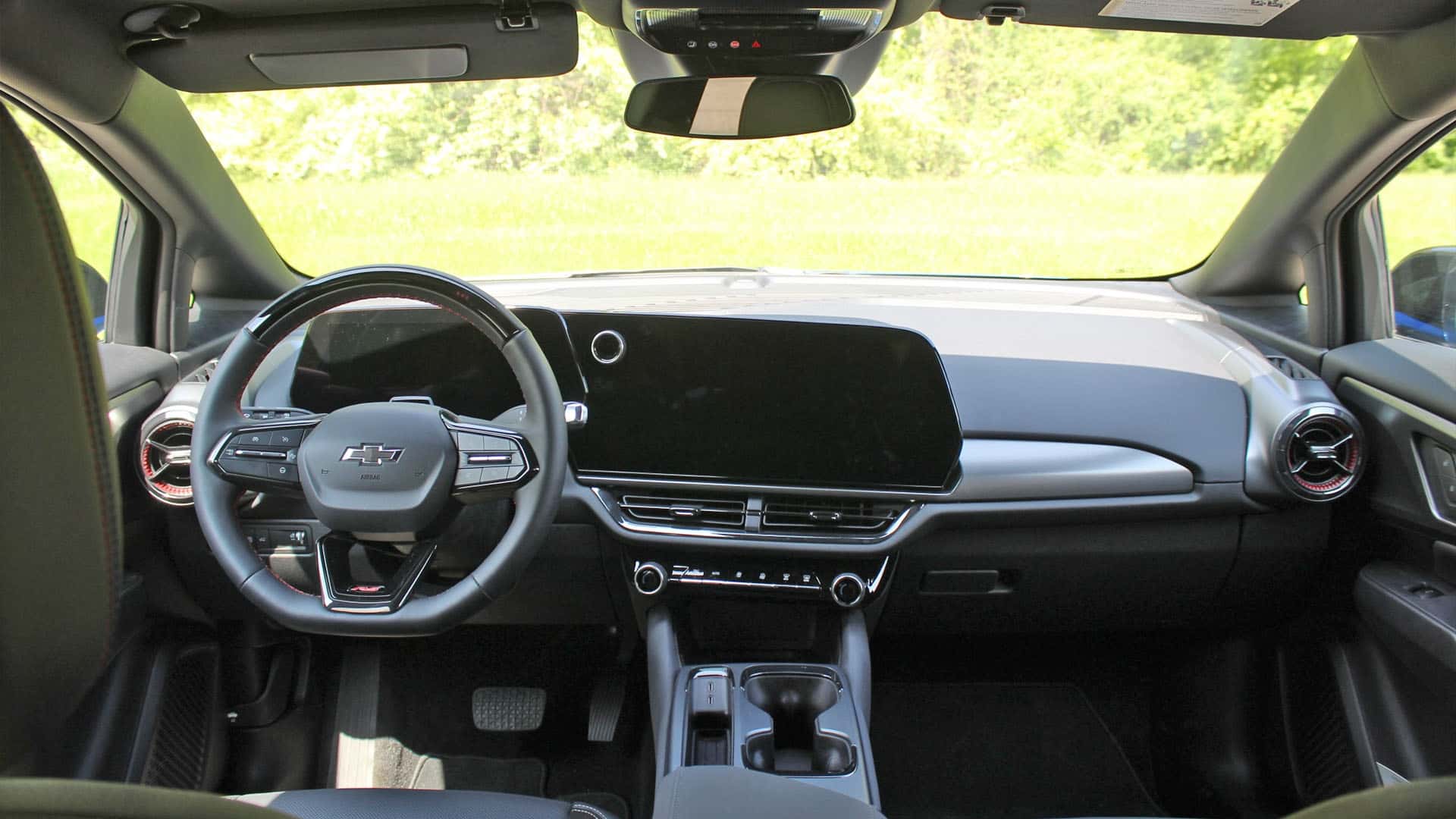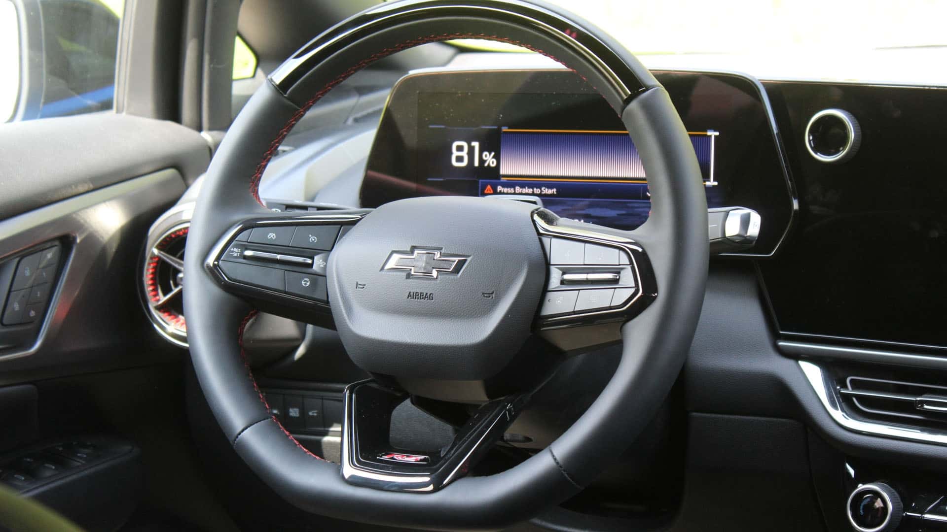 在內飾部分新車也采用了最新家族風格,雙大尺寸懸浮式液晶屏微微向駕駛的偏轉,呈錯落排列,中央鑲嵌有實體旋鈕,提升了操控的感覺,懷擋機構作為新一代雪佛蘭車型的標配當然不會缺席。方向盤有著全新的構造,平底樣式向前有醒目的紅色RS標志和紅色縫線提升了運動的感覺。除此之外,整體的設計較為克制,沒有太多花哨的元素,還是顯示出較為簡潔的風格,圓形的空調出風口,翻毛皮座椅等元素作為RS車型當然都不會缺席。