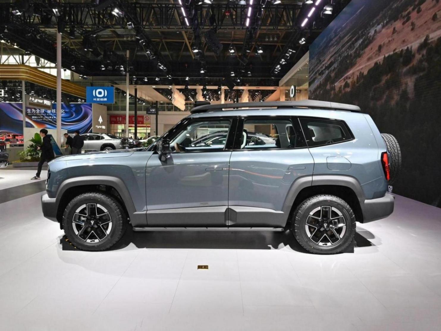 在外觀方面,新車在前臉部分采用了全新的設計理念,封死車鼻加入了上方窄條狀格柵引出了C字形的大燈組,下方則有著多層次的前保險杠部分貫穿式裝飾,配合額外的銀色護板,較大的接近角,顯示出硬派的姿態。車身側面,新車則有些像加大號的哈弗大狗,整體方正的車廂,同時車頂和窗線有所收攏,引出了獨特的D柱造型,突出的輪拱,沒有傳統的硬派越野車那么夸張,更加接近于輕越野車的視覺效果,離地間隙也是如此,其實顯露了該車的身份。