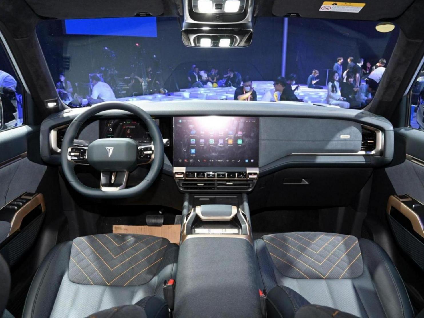 在內飾部分,新車采用了巨大的中控液晶屏幕配液晶儀表組成雙嵌入屏系統,中控臺面整體采用了豎直造型,有一股強烈的美系硬派SUV的既視感,只是內部的裝潢用料要高級了很多,符合國產車型應有的姿態。扶手箱前端區域獨特的懷擋機構,保留大量實體按鍵的設計,也滿足了硬派越野車的需求。方向盤有著全新的造型,與此前幾款車型都不相同,算得上一大亮點。手機無線充電面板等元素當然也都不會缺席,并有撞色工藝可供選擇,提升了時尚的屬性。