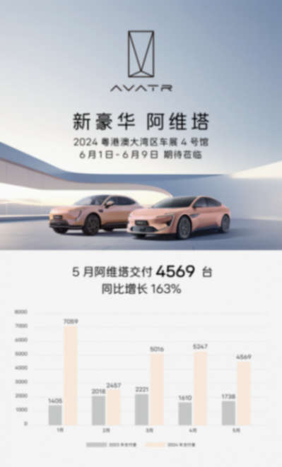 阿維塔科技宣布,阿維塔5月交付4569輛,同比增長163%,增速領跑高端智能電動汽車市場。