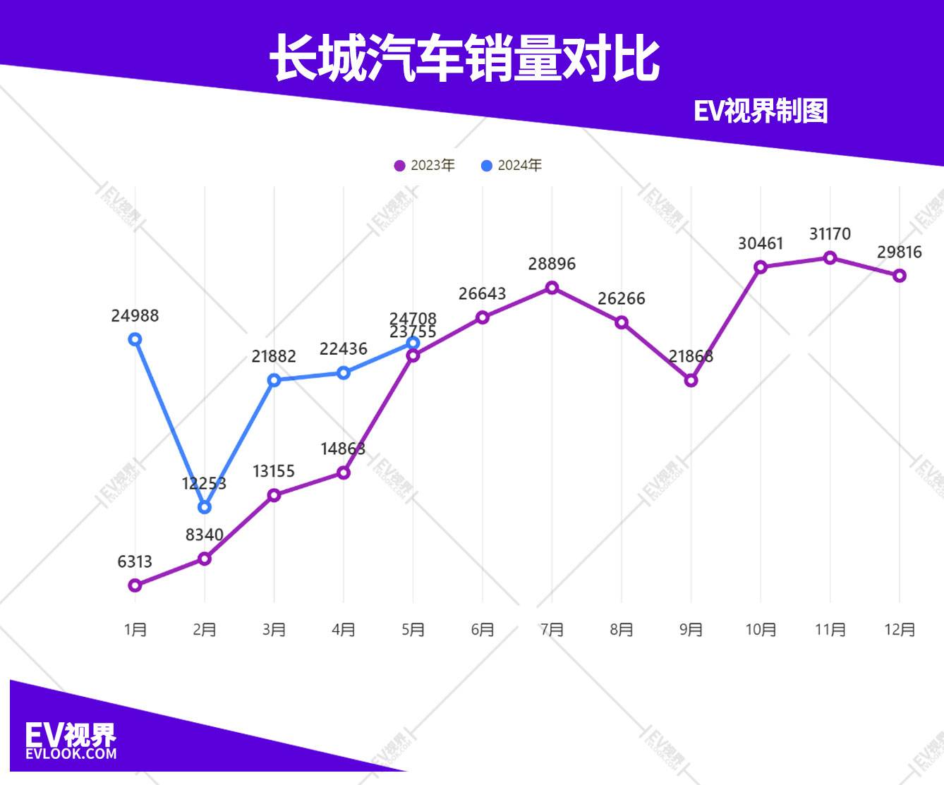 環(huán)比增長10.1%,長城汽車5月新能源汽車銷量24708輛