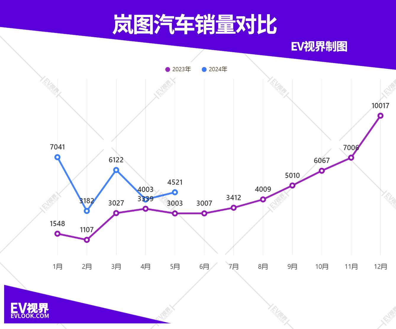 嵐圖汽車發(fā)布5月交付數(shù)據(jù),2024年5月份共交付4521輛,同比增長51%,1-5月累計銷量24869輛,同比增長107%。