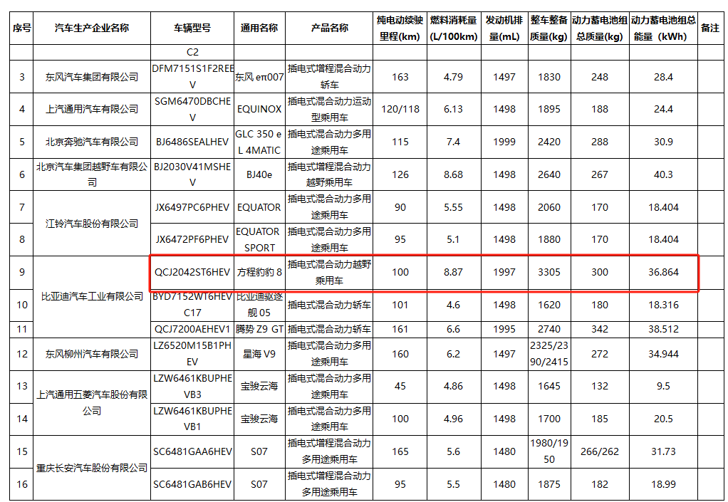 動力方面當然是招牌的DMO越野平臺,搭載2.0T插電式混合動力系統,發動機最大功率為200kW,匹配最大功率200kW+300kW前后雙電機,組成電四驅系統。與之匹配的是36.864kWh磷酸鐵鋰電池組,工信部顯示純電續航里程為100km,虧電油耗8.87L/100km。