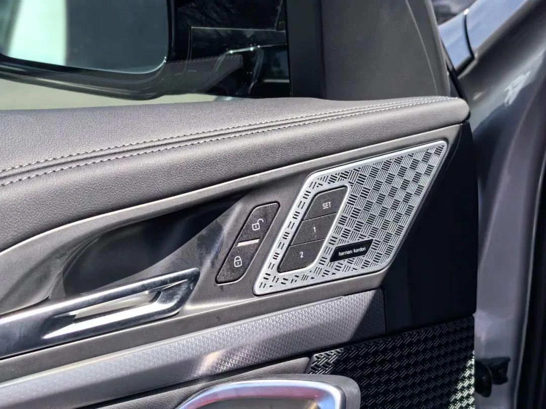 哈曼卡頓音響在M35i車型上是標配,蓋子采用了金屬材質,logo可以發(fā)光,提升了內飾高級感,很討喜的小設計。中控扶手箱非常的小,放一盒口香糖加一些證件就是極限了,但是下部有個大的空間,可以放個托特包,不過要小心零碎物品在駕駛的時候有概率會甩出來,可能會滾到剎車踏板下面。