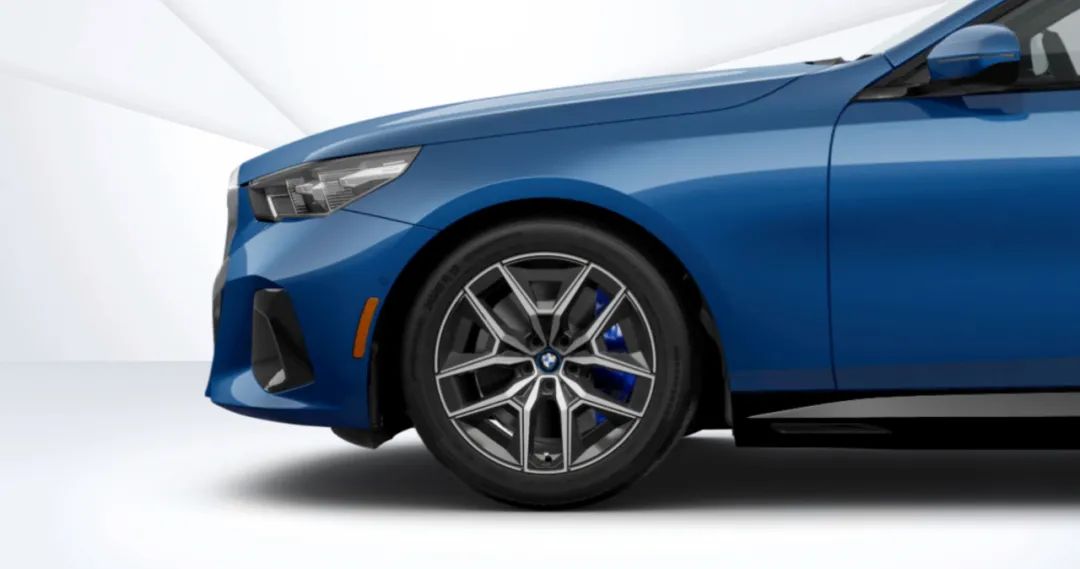 全新530i高配版標(biāo)配20英寸938M型星式輪輻鋁合金輪轂(黑色),可3500元選裝20英寸939M型空氣動(dòng)力學(xué)輪轂(黑灰雙色)。