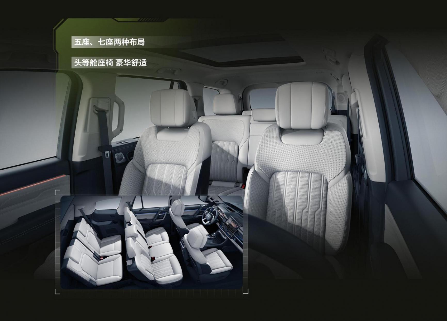 新車不僅帶有電動踏板,備胎后掛的設計同樣很有顏值感。此外,中高配置車型上還出現了20英寸的高亮輪轂設計,我認為確實要比同級別的競爭對手霸氣不少。車身數據部分,北京BJ60的長寬高分別為5040/1955/1925mm,軸距是2820mm。廠家也特別聽勸,除了五座設計,還擁有七座設計,這種座椅設計很貼當下潮流。