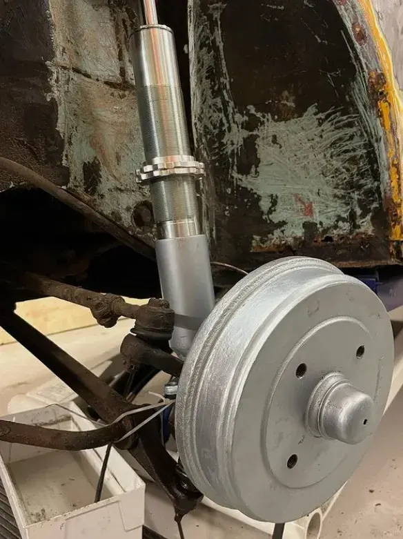 懸掛系統(tǒng)也沒(méi)有現(xiàn)成改件,車(chē)主采用高爾夫二代的絞牙避震,搭配氣囊彈簧,實(shí)現(xiàn)升降控制。