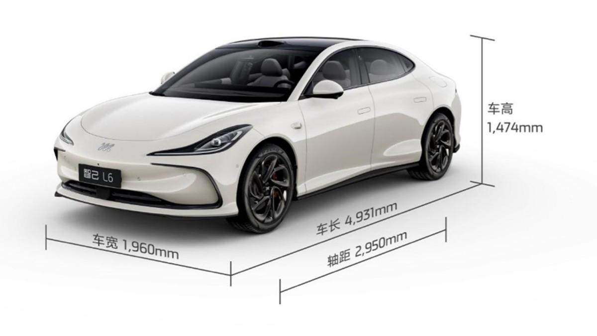 相較于“同級標桿”Model 3,智己L6的車身尺寸顯然更具優勢,新車全長4931mm,寬度為1960mm,車高1474mm,軸距為2950mm,是標準的中大型車“身材”。新車整體造型非常流暢,并且采用“上窄下寬”的設計,看起來會更加的運動??偠灾?,無論是駕乘空間還是視覺感受上,這臺車都要比Model 3更優秀一些。
