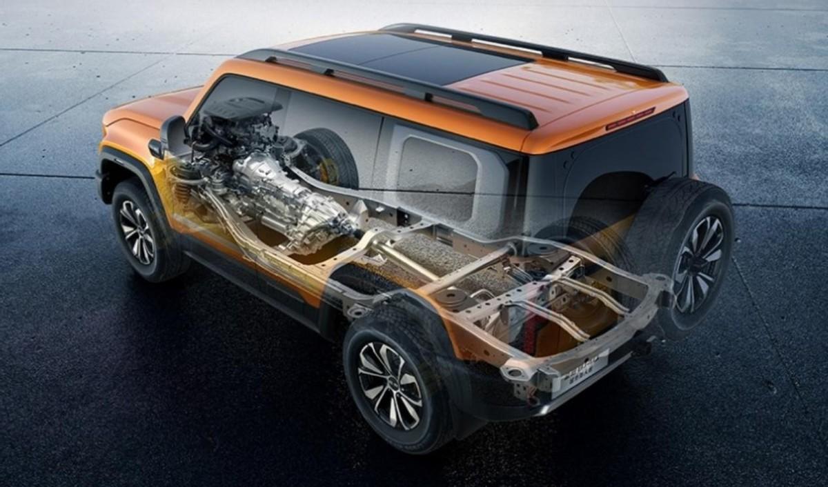 坦克300同樣采用非承載式車身,在車架的多個部位使用了1500Mpa的熱成型鋼,白車身的設計和BJ40不相上下。