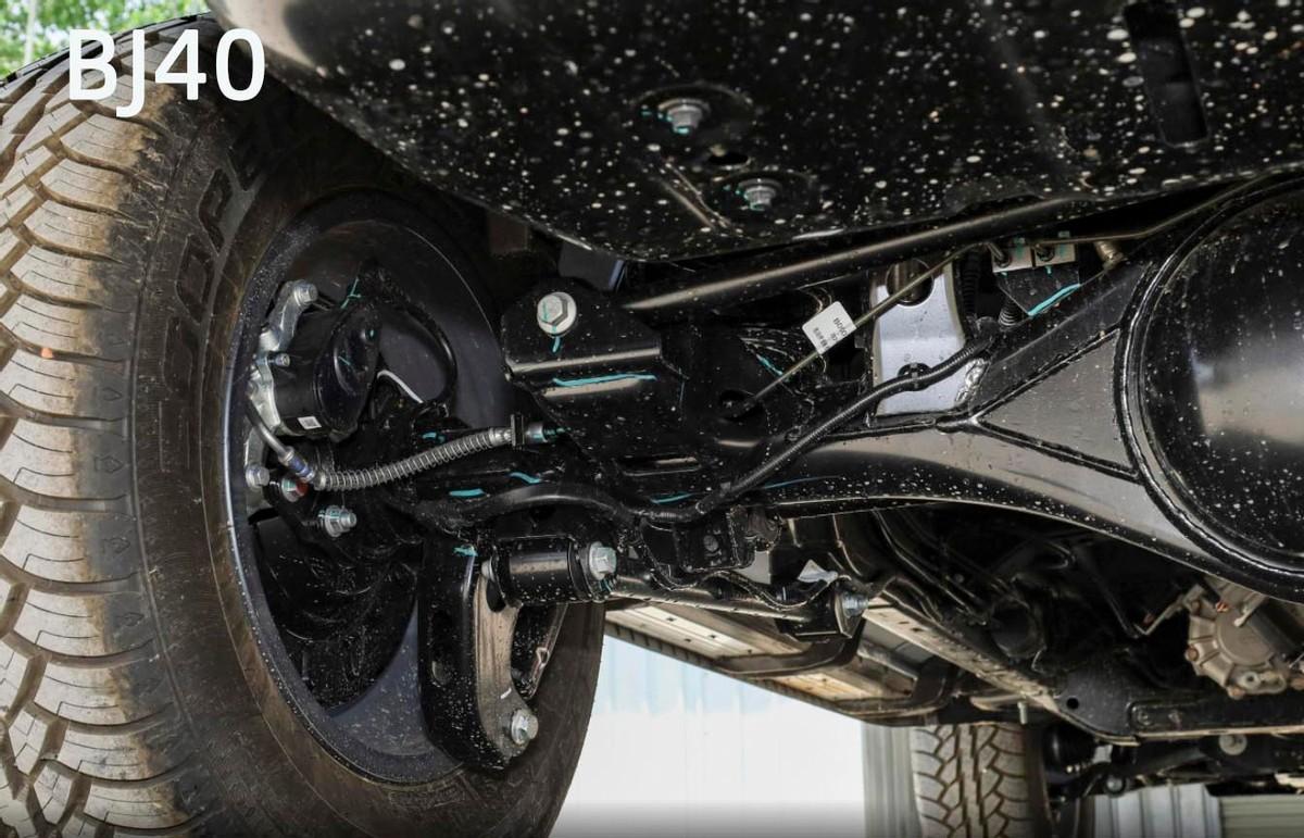 懸掛方面,輛車采用類似的前雙橫臂獨立懸架,以及后多連桿懸架,BJ40針對兩種不同的版本,懸掛調校也有差異,對于偏向市區駕駛的用戶可以選擇城市版本,偏向越野的可以選擇刀鋒版,為了減少車輛在高速越野時的側傾和前后俯仰,避震器經過細膩調校。