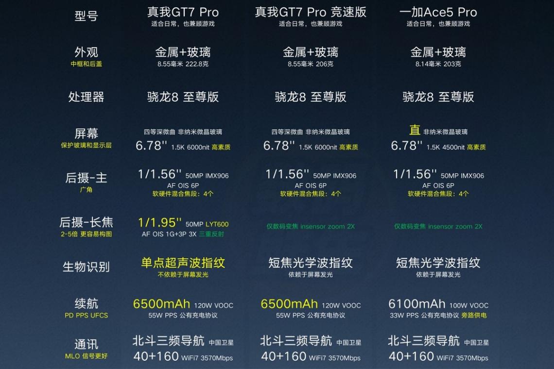 真我GT7 Pro競速版在真我GT7 Pro的基礎(chǔ)上去除了潛望長焦,所以拍照能力被削弱。好在主攝和超廣角得以保留,就看會(huì)不會(huì)保留賈樟柯濾鏡之類的特性了。另外,真我GT7 Pro也去掉了超聲波指紋,換成了短焦光學(xué)指紋。其他部分,兩款手機(jī)基本保持一致。