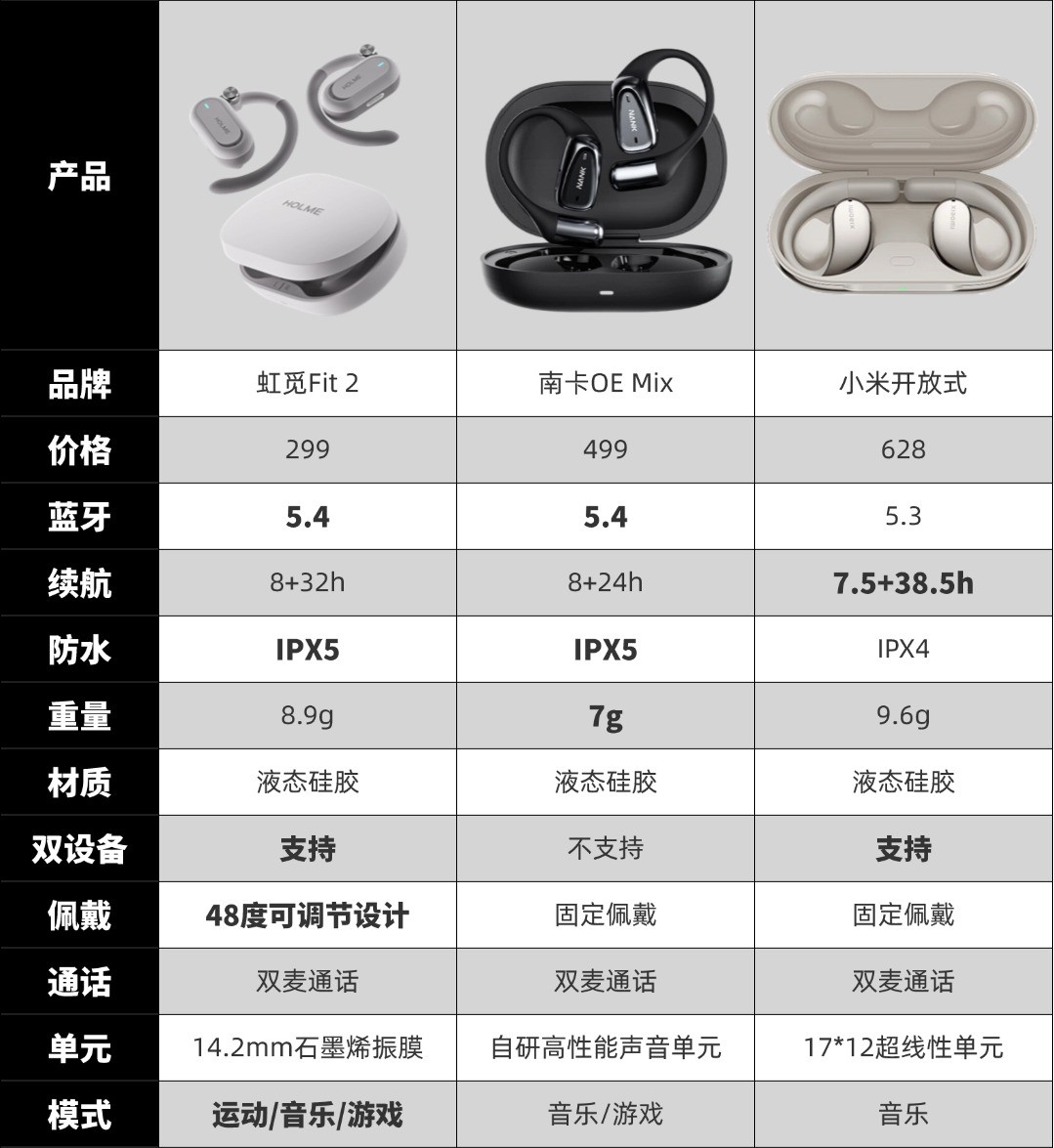 不知道大家有沒有發(fā)現(xiàn),入耳式的耳機(jī)越來越少人使用了,取而代之的是開放式的耳機(jī),大概也是因為大家使用耳機(jī)的頻率越來越高,而開放式更適合長時間去使用,所以大家也更愿意去使用開放式耳機(jī),有很多的耳機(jī)大廠上新了不少的開放式耳機(jī),大家都不知道選擇哪款好,所以今天帶來了三款熱門開放式耳機(jī)的測評體驗,分別是虹覓FIT 2,小米開放式耳機(jī),南卡OE Mix。