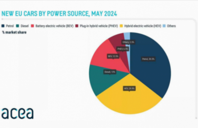 根據(jù)最新數(shù)據(jù),2024年5月歐洲電動(dòng)車(chē)(EV)銷(xiāo)量大幅下降,原因是消費(fèi)者對(duì)高昂的價(jià)格望而卻步。盡管整體新車(chē)注冊(cè)量下降了3%,電動(dòng)車(chē)的市場(chǎng)份額從去年的13.8%跌至12.5%。然而,HEV混動(dòng)車(chē)款的市場(chǎng)份額卻從25%上升到29.9%,成為市場(chǎng)的最大贏家!