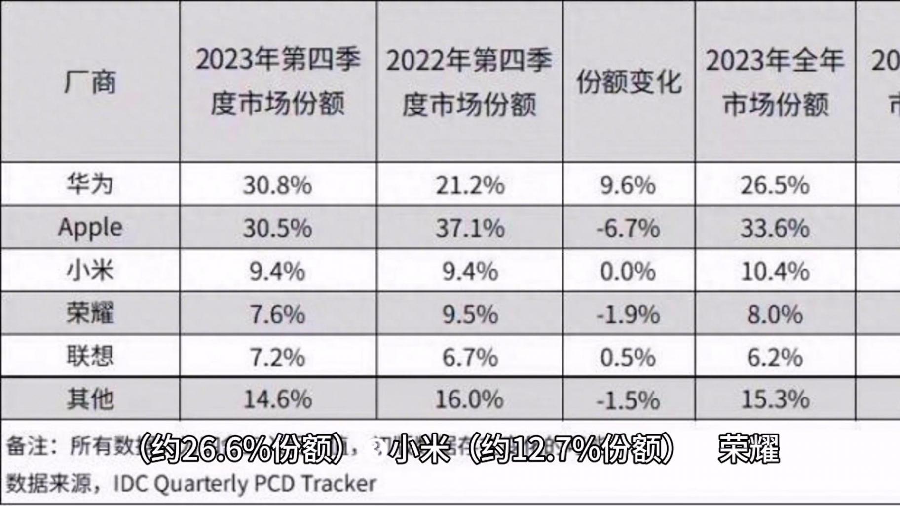 近日市場研究機構IDC更新了2024全年(1-12月)中國平板電腦市場報告。數據顯示2024年"中國"平板電腦出貨量TOP5依次是華為(約32.3%份額)、蘋果(約26.6%份額)、小米(約12.7%份額)、榮耀(約8.3%份額)、聯想(約6.7%份額)。華為第一,小米第三,榮耀第四,聯想第五,蘋果是TOP5中唯一下滑的位列第二。